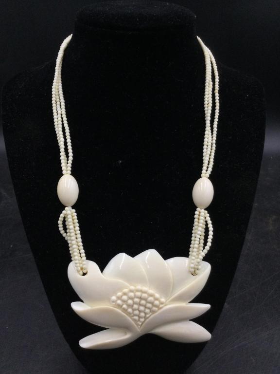 Mother-of-Pearl and Shell Beaded Necklace with Carved Floral PendantBlock Auction House4.2(199)$152 days Left