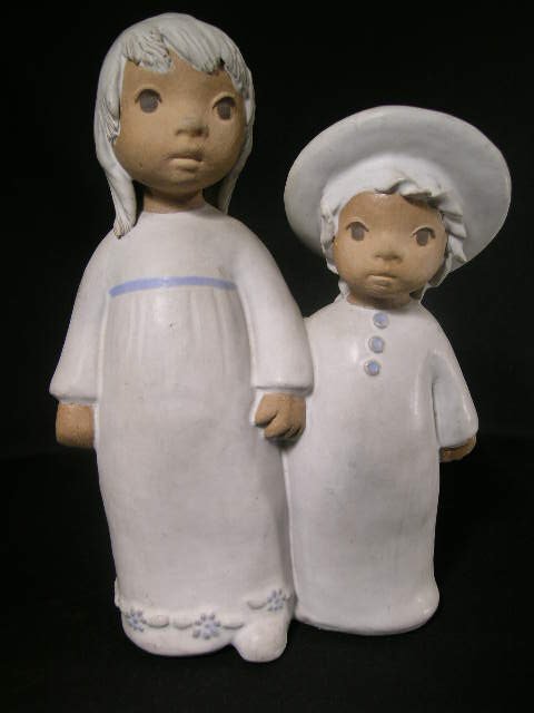 Vintage Ceramic Bisque Figurine Children Signed