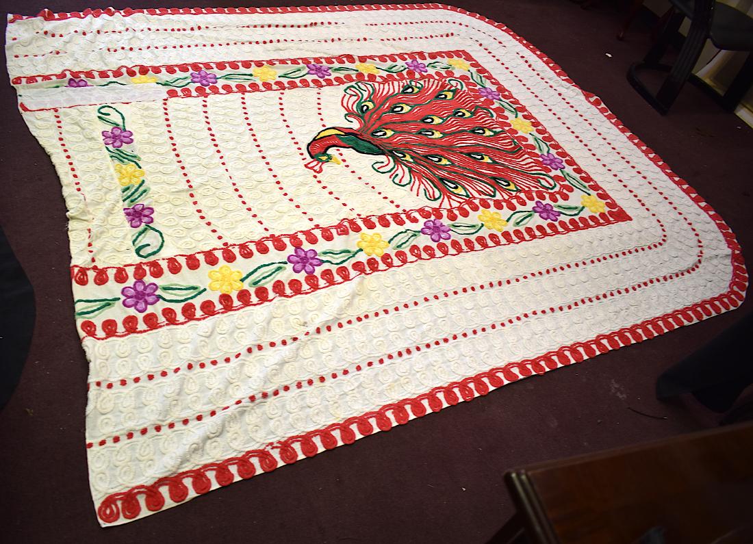 Vintage Chenille Peacock Bedspread