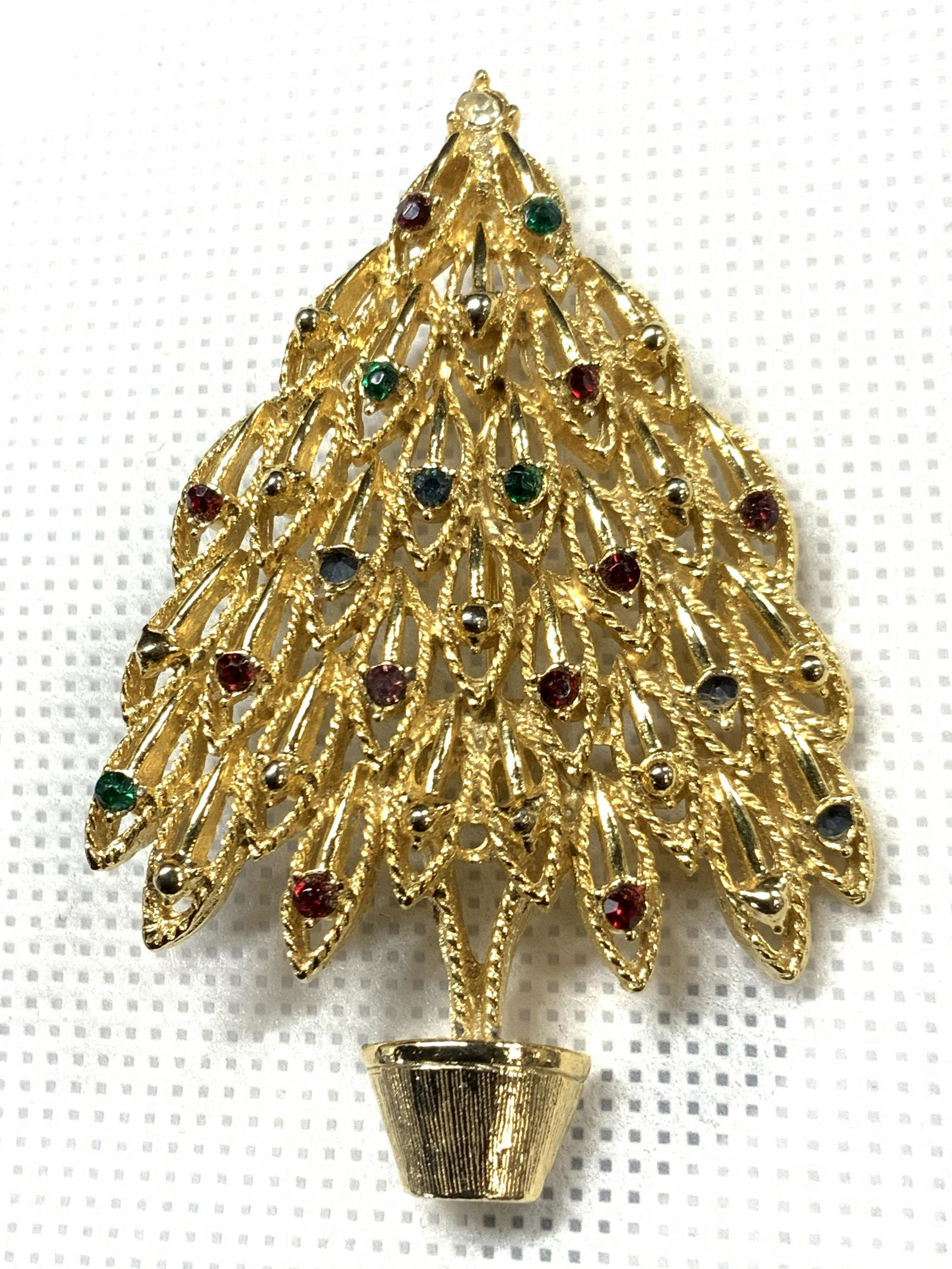 Vintage Christmas Tree Brooch MYLU Rhinestones Gold ToneRapid Estate Liquidators and Auction Gallery4.5(1.3k)$2013 hrs Left