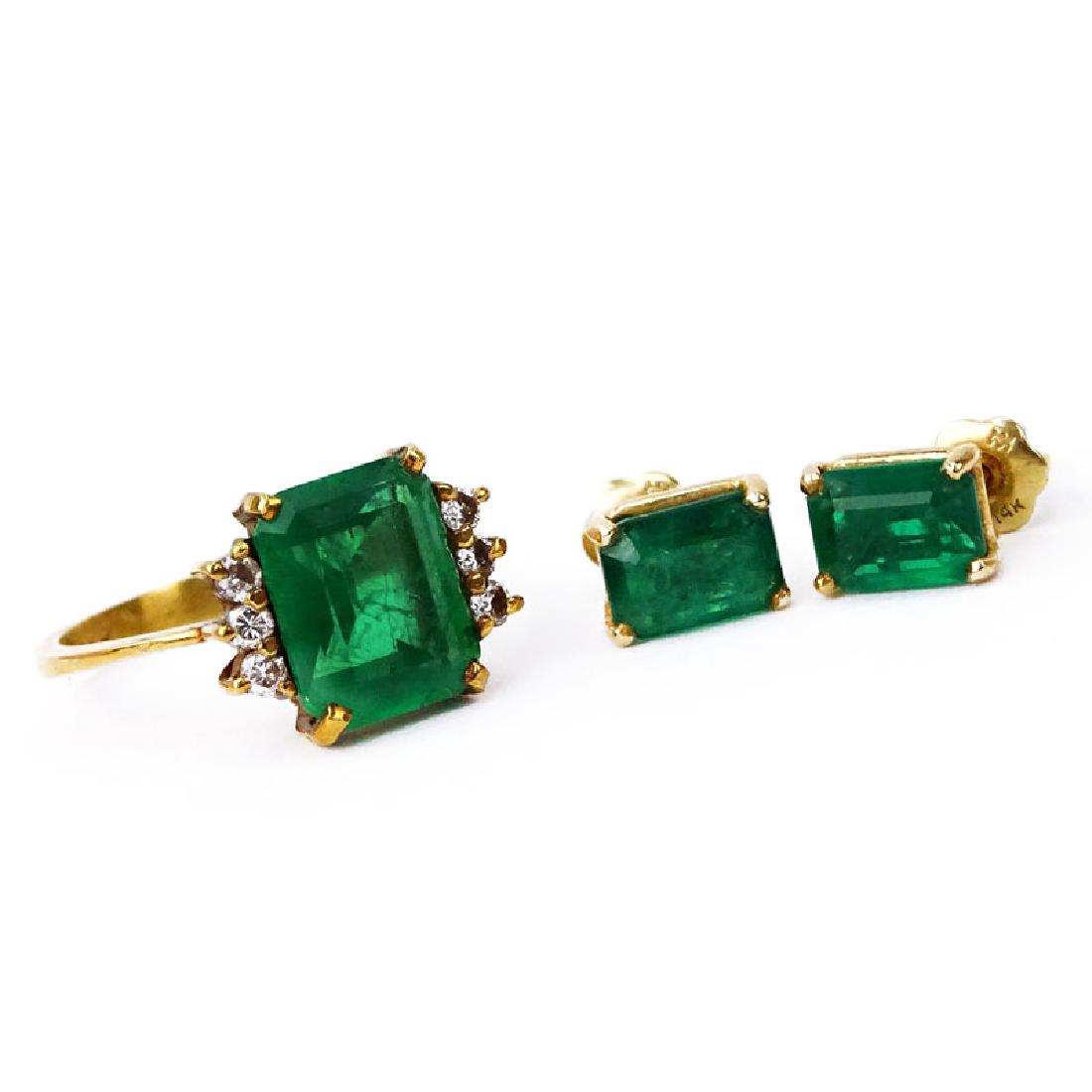 Vintage Colombian Emerald and Yellow Gold Ring and Ear
