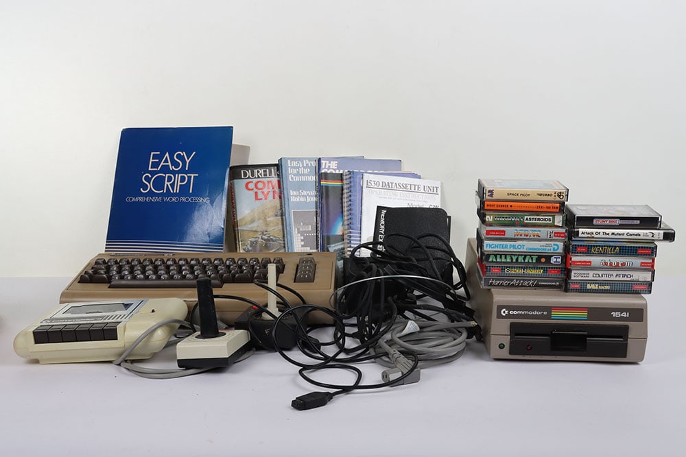 Vintage Commodore 64 console and games.