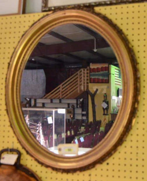 SoldVintage Oval MirrorGilding on wood, measures approx 24 inches H x 21 inches W. Condition consistent with age. Property of historic Bedford farmhouse.See Sold Price