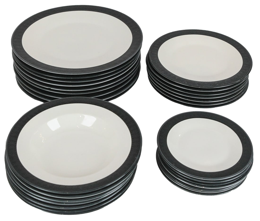 Lot of 36 Stoneware Dishes, Plates & Bowls, by Jars France3 days LeftRARE Arabia Finland "Valencia" Cobalt Blue 64-Piece Dinnerware Set – Signed Ulla ProcopéMar 26, 2026(156) pcs. IRONSTONE plates, small plates, some bowls, serving plates, etc. Including WEDGEWOOD ,Apr 10, 2026A Service of American Graff Washbourne and Dunn Sterling Ramekins2 days Left(14 Pc) Raynaud Limoges Platinum Porcelain Tableware6 days LeftHuschenreuther Hohenberg Bavaria China Set in Cobalt (76) pcsMar 28, 2026Brickett Davda Ceramics4 days Left70 Pc. Wedgwood "Agincourt" China Set.3 days LeftAntique Rhine Pattern Gray Transferware GroupMar 28, 2026Imperial Bone China dinnerware, 32pc: dinner plates, luncheon plates, teacups and saucers 3/4"H x 10Mar 28, 2026Vintage British Friendly Village Porcelain SetApr 02, 2026Of King Edward VII Royal Interest: a collection of Pirkenhammer dinnerwares, circa 1900-1909,7 dinner plates and 2 oval platters - Blue Onion pattern, Meissen 1850-1924 and 19692 days Left