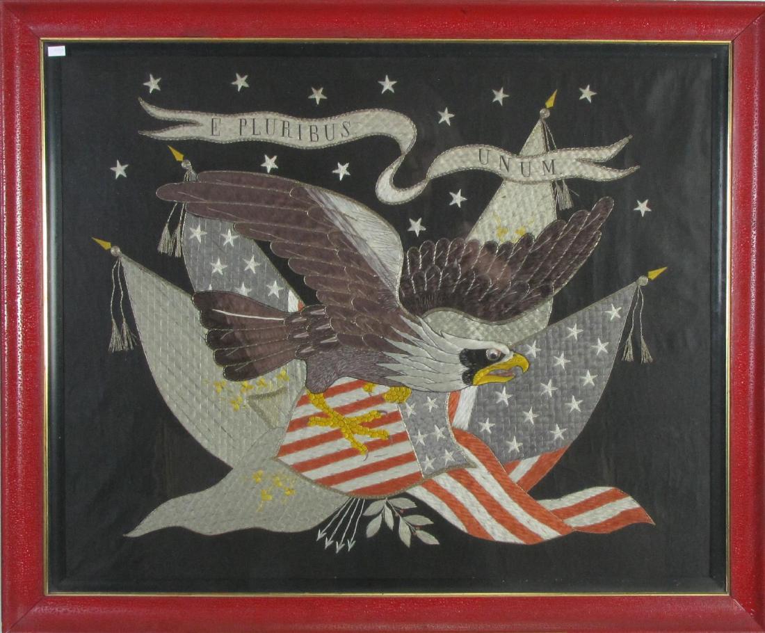 Antique United States 46 Star Flag, 1908-1912Valley Forge Cotton Sewn US Flag 112 x 56"PATRIOTIC NEEDLEWORK "IN REMEMBRANCE OF MY CRUISE IN CHINA JAPAN AND PHILIPPINE WATERS" TheFeb 26, 2026Spanish American War Patriotic Silk Floss and Metallic Thread Eagle Banner with Misspelled MottoMar 08, 2026UNSIGNED EAGLE WITH AMERICAN FLAG PAINTINGFeb 22, 2026In God We Trust By J Larsen-Collinge watercolour on paper 20183 days LeftJapanese Embroidery Of MA Seal19 hrs LeftOF WORLD WAR II AMERICAN ARMY INTEREST: A rare, inscribed Liberation of Rome flagAmerican School , 20th Century, Freedom, Mixed media on canvas, 24 x 34 inches455 Lots AwayHandmade Vintage Patchwork Rug.7'9" x 10"3 days LeftPatriotic Feather Eagle & Shield19 hrs LeftSEVEN AMERICAN COTTON PATRIOTIC TEXTILES.7 days LeftAmerican Eagle Standing On American Flag Bronze SculptureFeb 28, 2026Federal Style Silver Gilt Carved Eagle, ContemporaryFeb 28, 2026American Flag 13 Stars Nautical Anchor Battle Worn 1890 30 X 45Feb 20, 2026Handmade Vintage Patchwork Rug in red color. 7'9" x 10'3 days Left