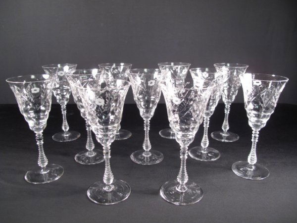 VINTAGE ETCHED CRYSTAL STEMWARE 11 PCS