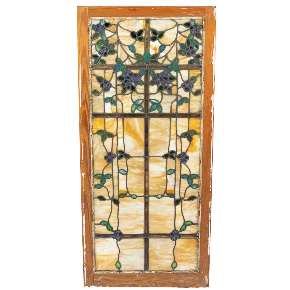 Vintage Floral Leaded Stained Glass Panel