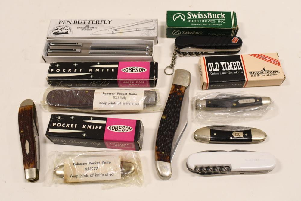 Lot Of 8 Sporting KnivesLOT OF 5: SCHRADE POCKET KNIVES.Feb 25, 2026LOT OF 19: NOVELTY, FIGURAL MINIATURE KNIVES.Feb 25, 2026LOT OF VINTAGE STAG HANDLE FIXED BLADE KNIVESFeb 21, 2026LOT OF 5: ROBESON SHUREDGE CUTLERY CO. POCKET KNIVES.Feb 25, 2026LOT OF 26: NOVELTY AND MINIATURE FOLDING AND SHEATH KNIVES.Feb 25, 2026LOT OF 3: BUCK ELITE AUTOMATIC LOCK BACK KNIVES.Feb 25, 2026LOT OF 8: PUMA KNIVES IN GREEN AND YELLOW BOXES.Feb 25, 2026LOT OF 5: VALLEY FORGE AND C.F. WOLFERTZ, POCKET KNIVES.Feb 25, 2026LOT OF 3: KA-BAR AND UNION CUT CO. POCKET KNIVES.Feb 25, 2026LOT OF 6: OVB, HIBBARD SPENCER BARTLETT, LF&C, SENATOR, LOBSTER, POCKET KNIVES.Feb 25, 2026LOT OF 4: BUCK FOLDING LOCK BACK KNIVES IN ORIGINAL BOXES.Feb 25, 2026LOT OF 5: BUCK FOLDING LOCK BACK KNIVES IN THE ORIGINAL BOXES.Feb 25, 2026LOT OF 4: BUCK USA FIXED BLADE HUNTING KNIVES ALL IN ORIGINAL BOXES.Feb 25, 2026COLD STEEL Pendleton Lite Hunter and REALTREE Replaceable Blade Folding Knife LotFeb 22, 2026LOT OF 4: PULL BALL SCHRADE, REMINGTON, AND JCN CO. SWITCHBLADES.Feb 25, 2026