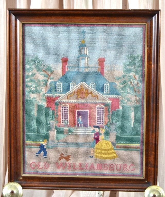 Large Vintage Framed Needlepoint Textile French Romanticism 34 x 42