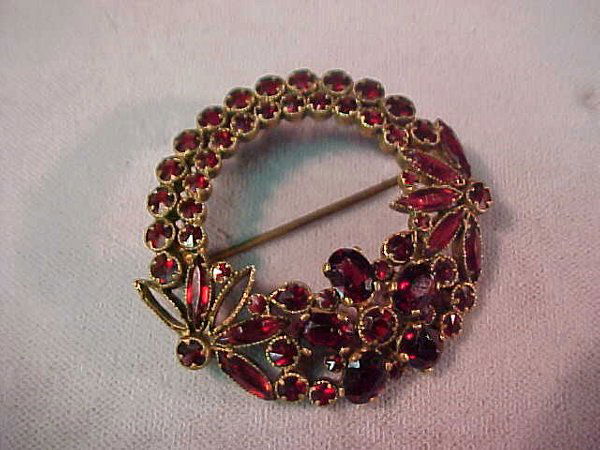 Vintage 14K gold garnet mounted pin. Concentric rings with floral decoration and 3 garnet cabochons.Tremont Auctions4.6(313)$1253 days Left