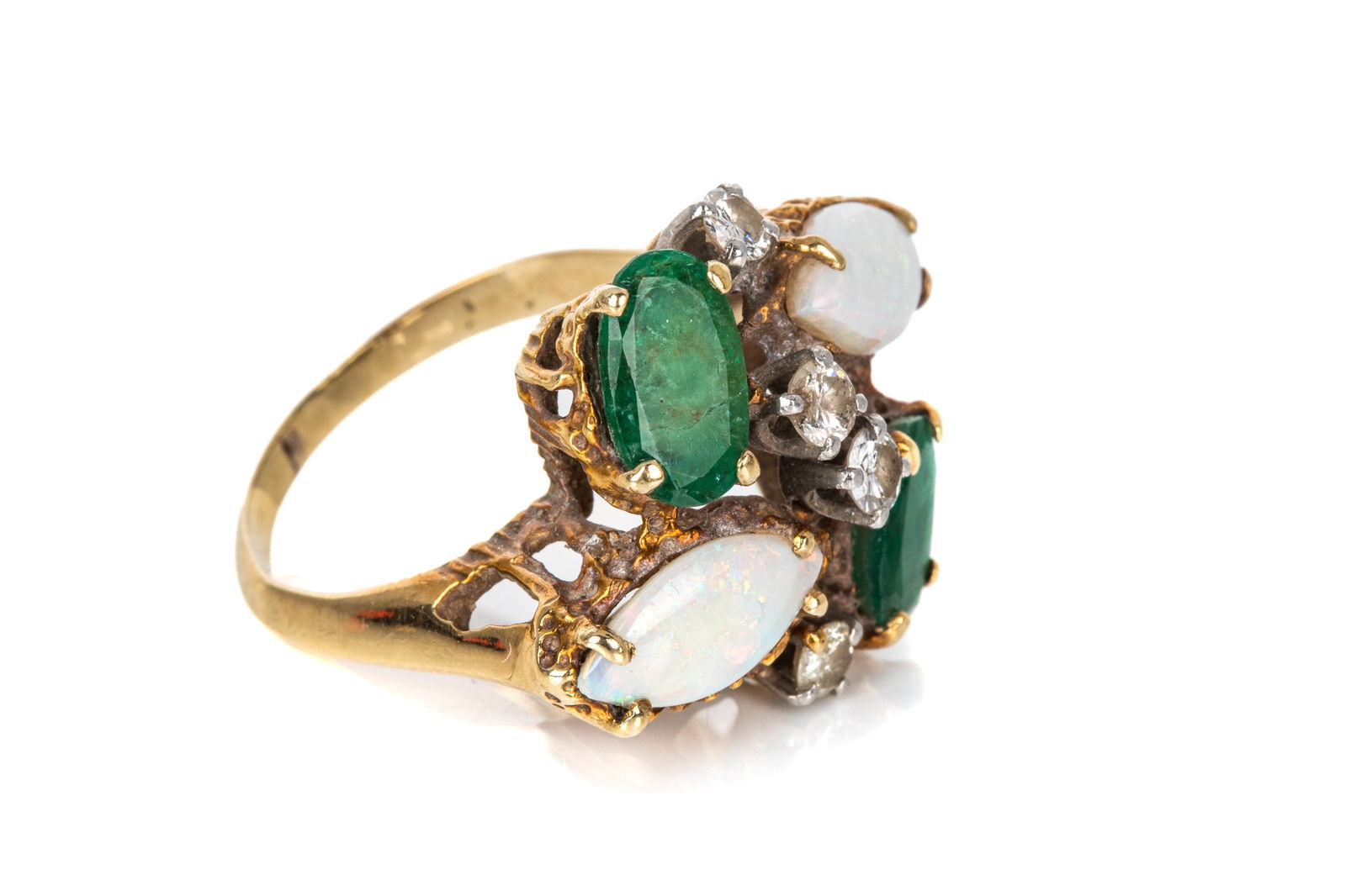VINTAGE GOLD, EMERALD & OPAL RING, 6.5g
