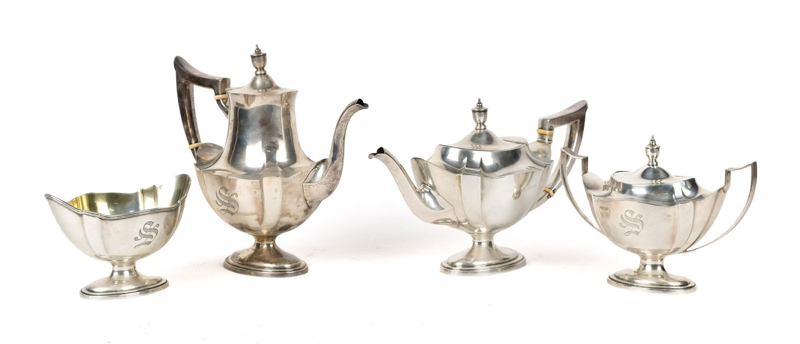 (Lot of) 3 Sterling Silver Service Items, 2 by Emil Hermann4 days LeftWilliam Hunter 1842 Sterling Teapot Set of ThreeFeb 28, 2026Sterling Coffee and Tea Set by Reed & BartonMar 10, 2026Gorham Sterling 5 Pc. Coffee and Tea SetMar 10, 2026Vintage WM A Rogers Silverplated Tea Pot & Creamer7 days LeftGorham Plymouth sterling silver partial tea/coffee service, 3pc: lidded sugar bowl, creamer, waste3 days LeftA Four-piece Silver Tea and Coffee Service, possibly Peruvian3 days LeftSix-Piece Gorham Sterling Tea & Coffee ServiceFeb 26, 2026Garret Forbes American Coin Silver 4-Piece Tea Set6 days LeftGorham Queen Anne Sterling Silver 5 Piece Tea Set 1850-18995 days LeftAn English Garrard & Co, London Sterling Tea and Coffee Service2 days LeftFrank Smith Sterling "Georgian Garland" Coffee SetFeb 26, 20261896 Gorham Sterling Coffee & Tea Set w/ Cream & Sugar4 days LeftSILVERPLATE TEA AND COFFEE SERVICE4 days LeftDurgin sterling silver 5-piece tea set. Octagonal forms. Monogrammed. Includes: tea pot, coffee pot,Mar 01, 2026Frank W. Smith "Georgian" sterling tea service.6 days Left