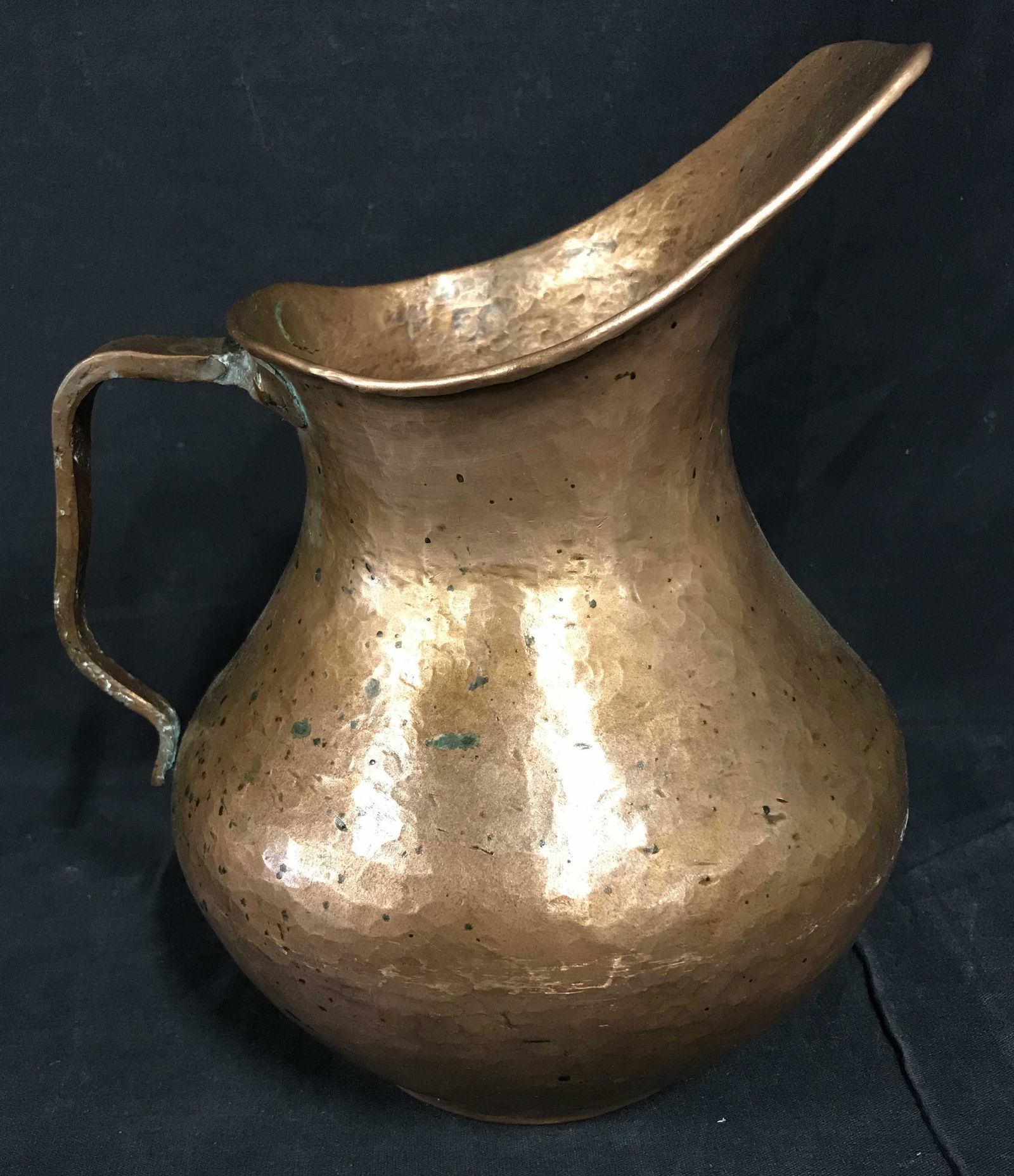 SoldHammered Copper PitcherVintage hand-hammered coppered pitcher, featuring thick copper walls, curving handle height 12.5 in. width 5 in. x depth 8.5 in. Provenance: a Rockport, Texas collection We happily provide seamlessSee Sold Price