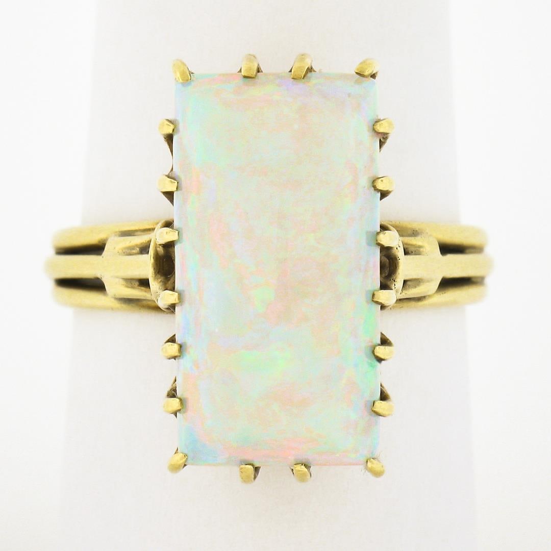 Vintage Handmade 18k Gold Rectangular Cabochon Cut Opal Solitaire Cocktail Ring