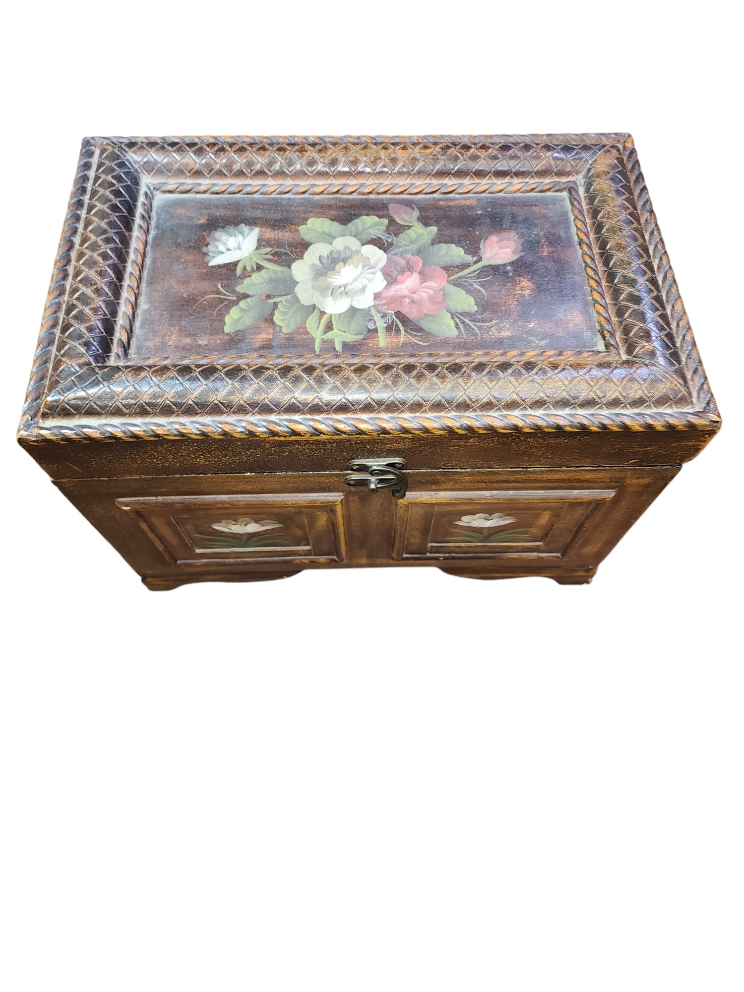 SoldVintage Decorative Hand Painted Chest Document BoxA BEAUTIFUL DECORATIVE HAND PAINTED CHEST BOX THAT MEASURES 14 1/4" LONG BY 10 1/4" WIDE BY 4 7/8 TALL. CONDITION OF THE CHEST IS NICE BUT AS YOU CAN SEE THERE ARE SOME BLEMISHES. STILL A NICE DECORATSee Sold Price