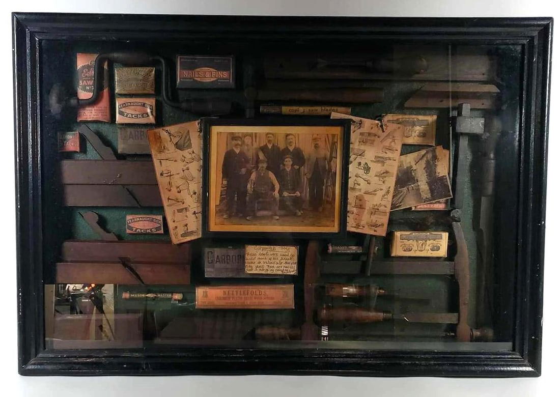 VINTAGE IRISH TOOL COLLECTION IN SHADOW BOX FRAME