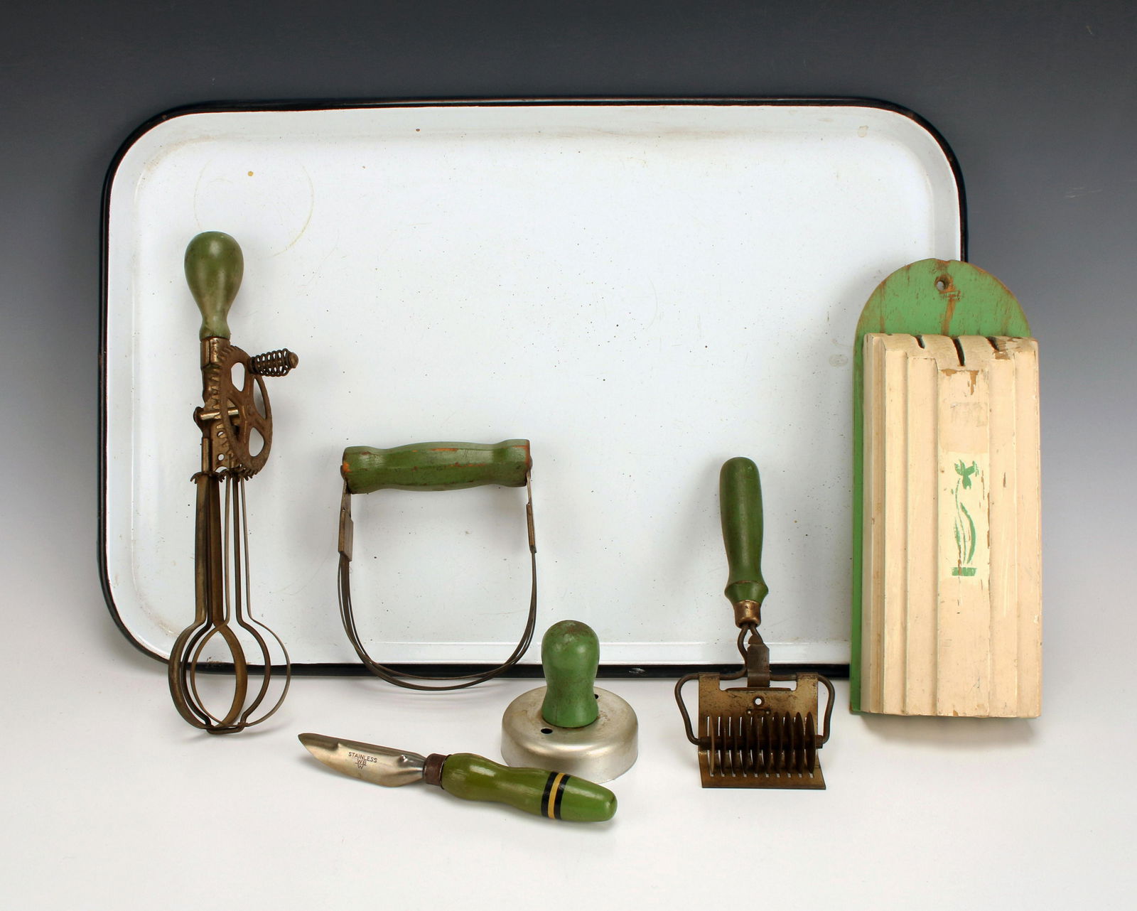 VINTAGE KITCHEN TOOLS GREEN HANDLES PLUS