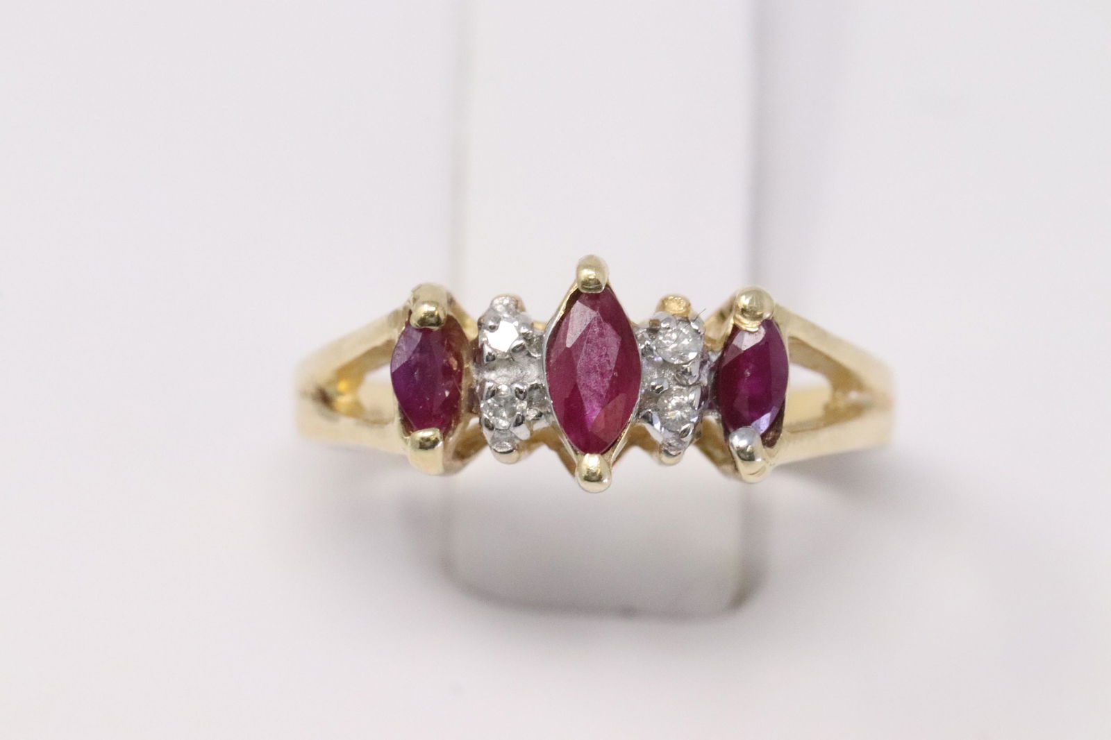 Vintage Ladies 14k Gold Ruby Diamond Ring