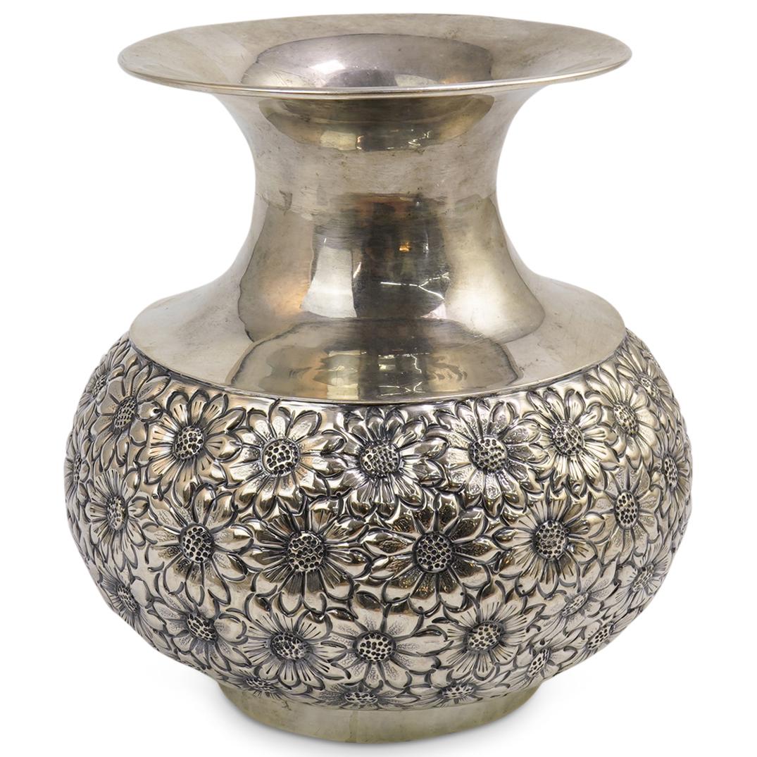 Handmade 925 Sterling Silver Ornate Flower Vase 14.75 Inches