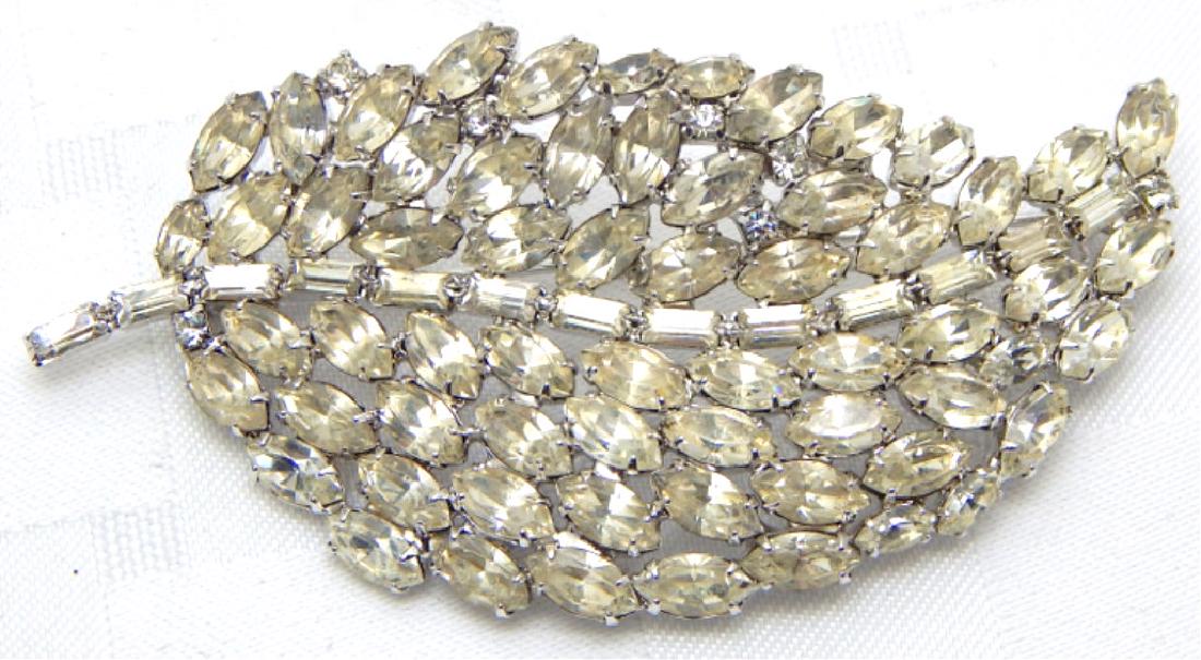 Vintage Leaf Design Rhinestones Brooch