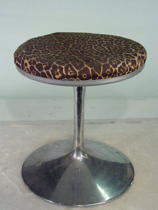 Vintage Leopard Print Vanity Stool with Chrome Bas