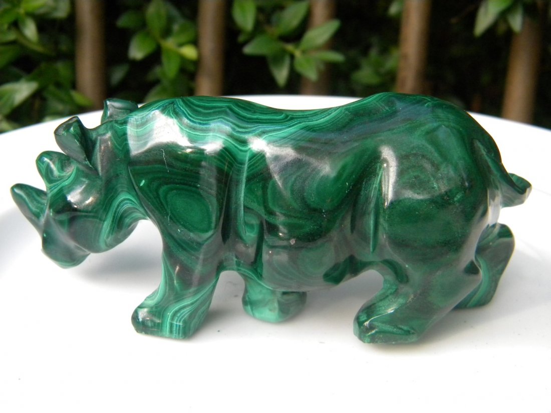 Vintage Malachite Rhino Statue