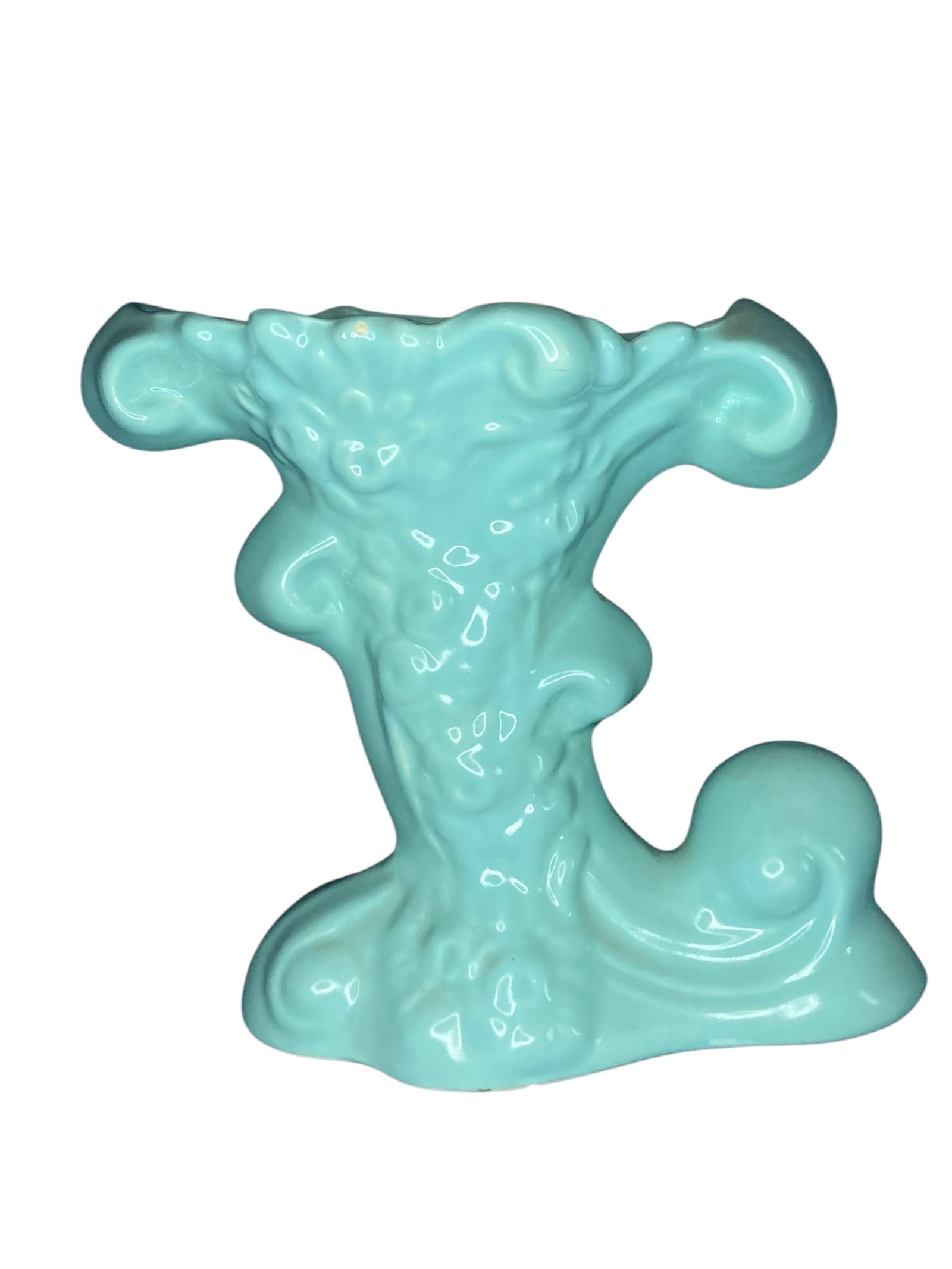 Vintage MCM Camark Teal Cornucopia Vase
