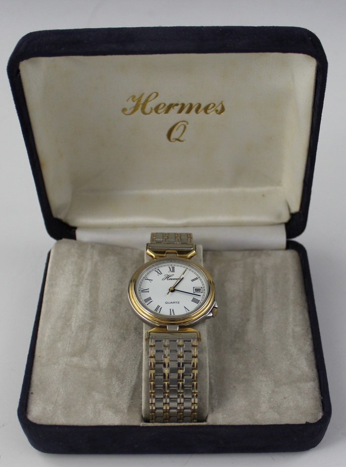 HERMES H WATCH GOLD DIAL QUARTZ WATCH