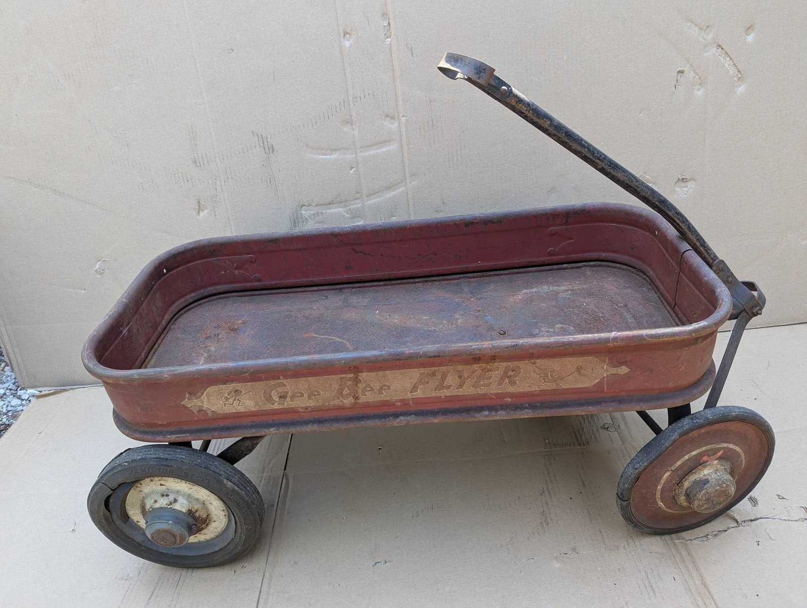 1930s Vintage Red Metal Pull Wagon Americana Decor