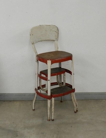 Orange Metal Frame Vintage Stool with Wooden Seat and Backrest