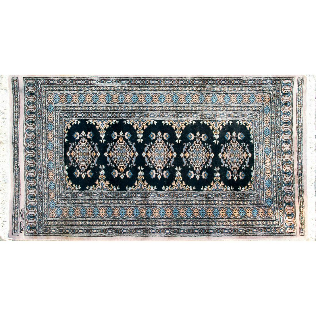 SoldVintage Estate Handmade Bokara Middle Eastern RugA BEAUTIFUL VINTAGE ESTATE HANDMADE BOKARA MDDLE EASTERN RUG THAT MEASURES 9' BY 6' 3" . RUG IS MADE FROM 100% WOOL. RUG HAS A SMALL BLEMISH AS SEEN IN THE PICTURE. SHIPPING AND HANDLING IS $75 WITHINSee Sold Price