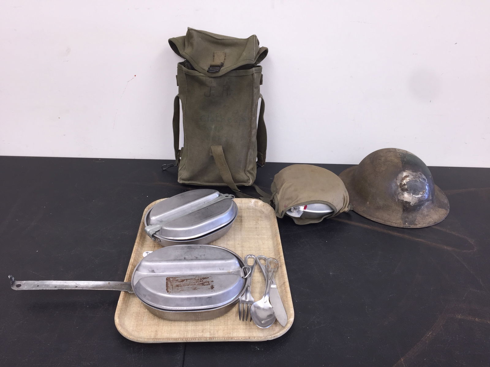 LOT VINTAGE & ANTIQUE MILITARY & OTHER CLOTHINGMar 07, 2026US Mess kits, Lot of 2Lot of Three WWII-Era Steel Helmets w/ LinersFeb 27, 2026Lot of Nice US Military Vietnam war Packs and BagsLOT OF US AND GERMAN WWI-WWII HELMETS AND FIELD GEAR.Mar 03, 2026WWII Item LotUS WWII Misc LotLot of Military AccessoriesLOT OF VINTAGE KITCHENWAREFeb 26, 2026Military Helmets incl. French & Camouflage (3)Feb 27, 2026LARGE LOT OF U.S. MILITARY GEAR6 days LeftLARGE LOT OF U.S. MILITARY GEAR6 days LeftCOUNTRY COLLECTABLES INCL SCALES/BELLS/WOOD PUZZLE, ETC6 days LeftLot of Various Military Wet Gear and PouchesUS Military WWII Era Canteen, Mess Kit, Belt, Cover Protective Individual UnusedMar 02, 2026Early US Military Leather Gaiters, Holsters, Sheathes, Cartridge Holders and MoreMar 02, 2026
