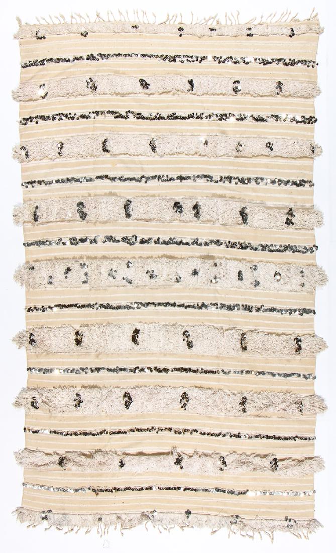 Handmade 8.10 x 12.7 Moroccan Wool Rug Beige Black Patterns