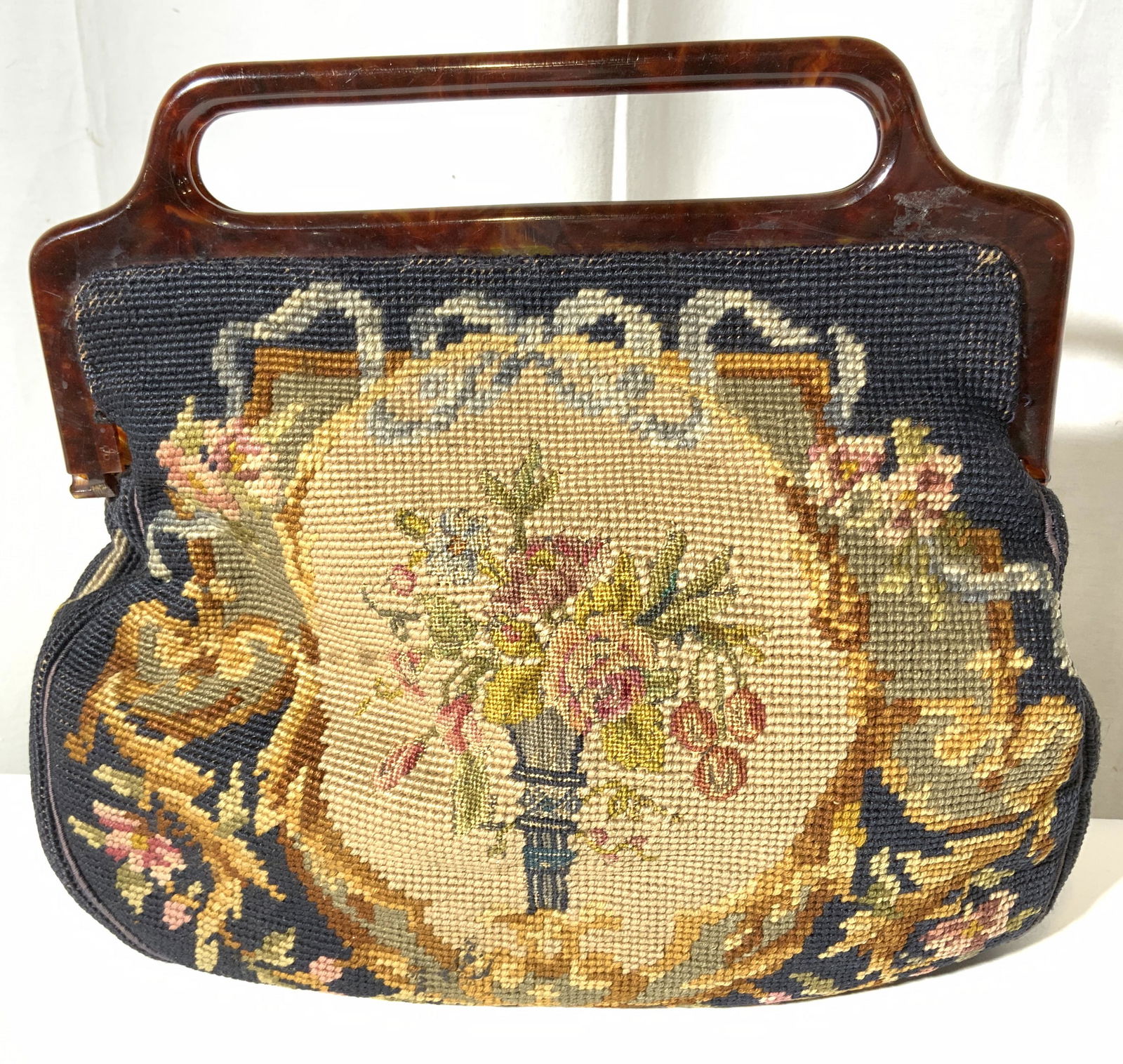 SoldVINTAGE NEEDLEPOINT PURSE W/ BANGLE HANDLEWidth- 9 1/4" In-house shipping available within continental U.S. for $20 plus insurance.See Sold Price