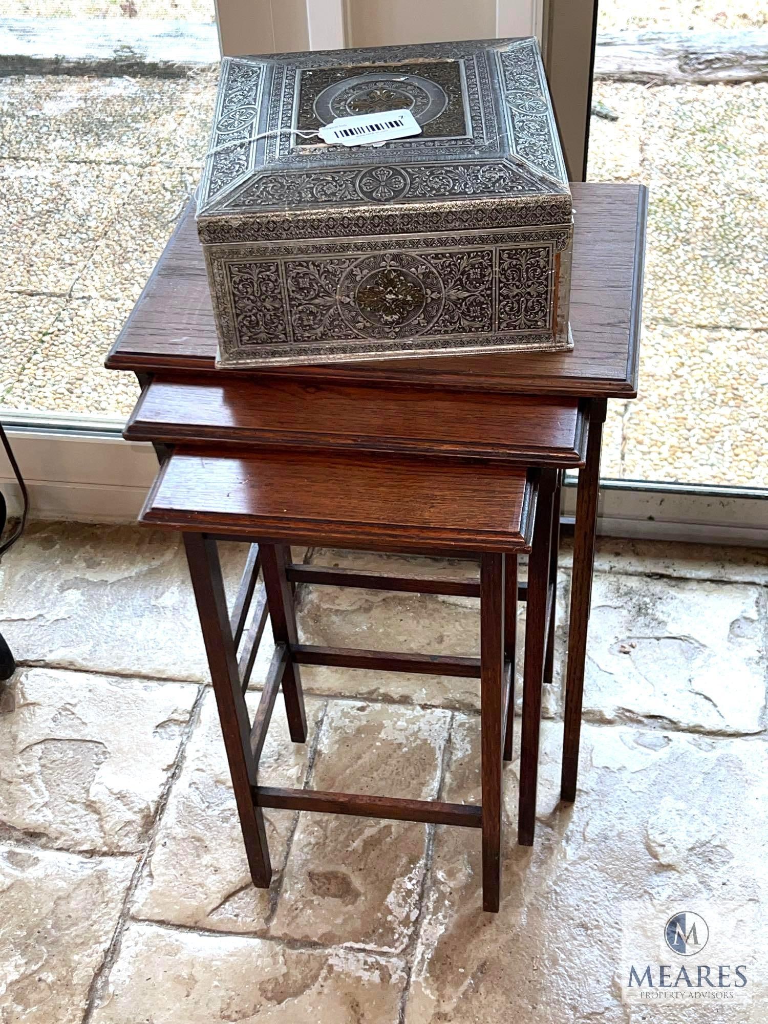 Vintage Nesting Tables with Foil Covered Storage Box