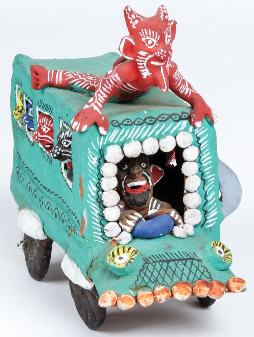 Vintage Ocumicho Earthenware Pottery Bus
