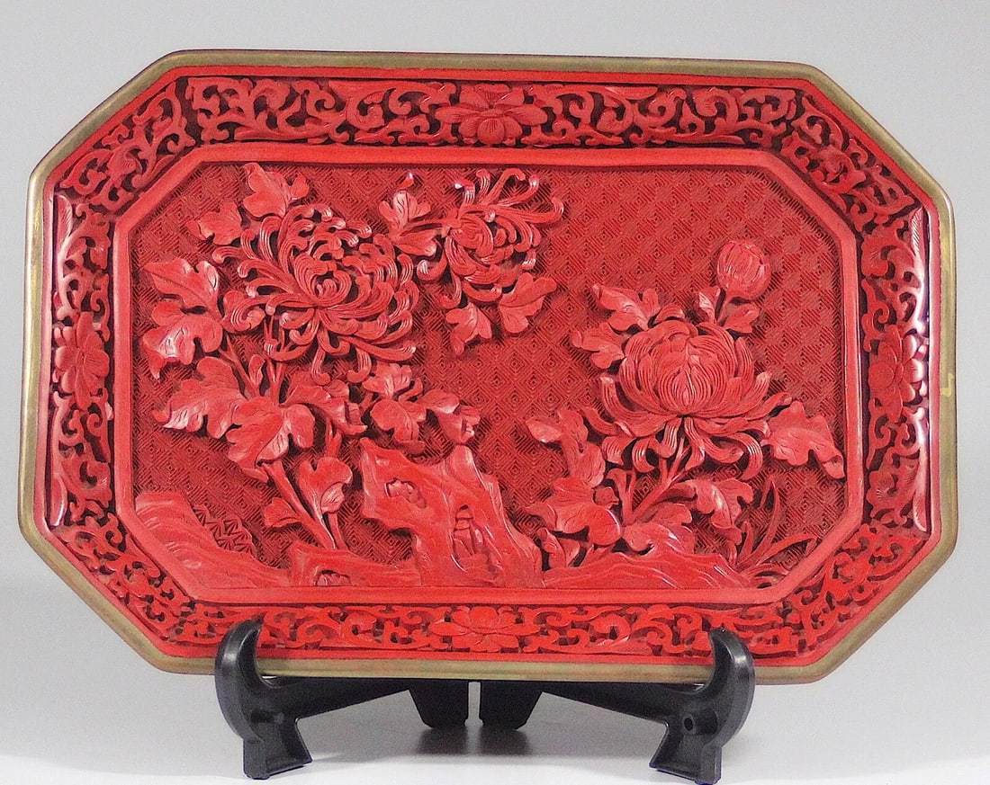 A FINE CHINESE QING DYNASTY CARVED CINNABAR LACQUER DOUBLE DRAGON TRAY bearing Ming marks to base. 3Hannam's Auctioneers Ltd4.3(415)£602 days Left