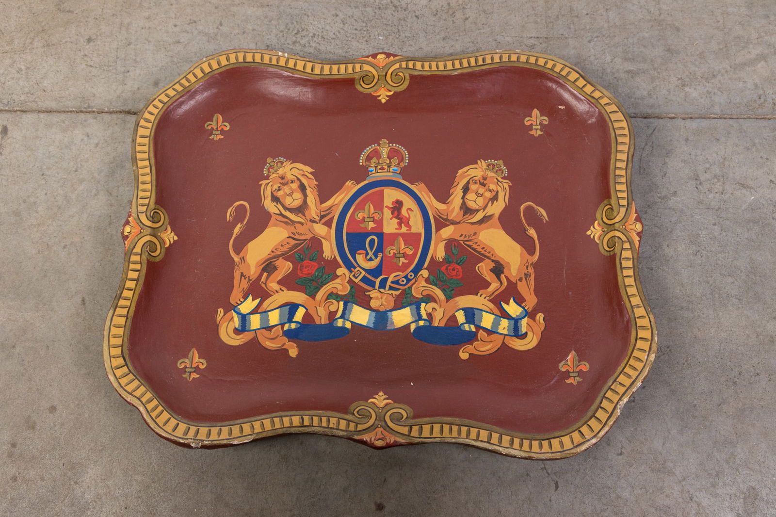 Vintage Paper Mache Armorial Serving Tray
