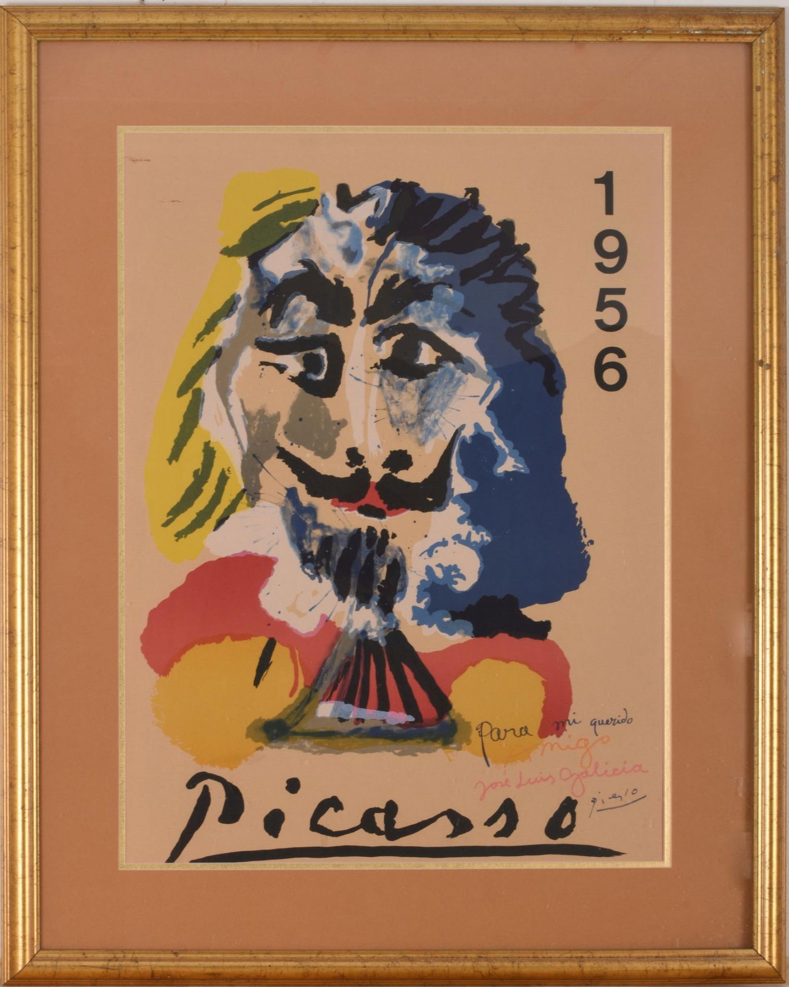 SoldPablo Picasso SIGNED Vintage Expo Vallauris PosterPablo Picasso (Spanish, 1881-1973). A vintage art lithograph poster, produced circa 1957 for Exposition Vallauris, the annual ceramics festival held in Vallauris (France), Picasso's home from 1948 toSee Sold Price