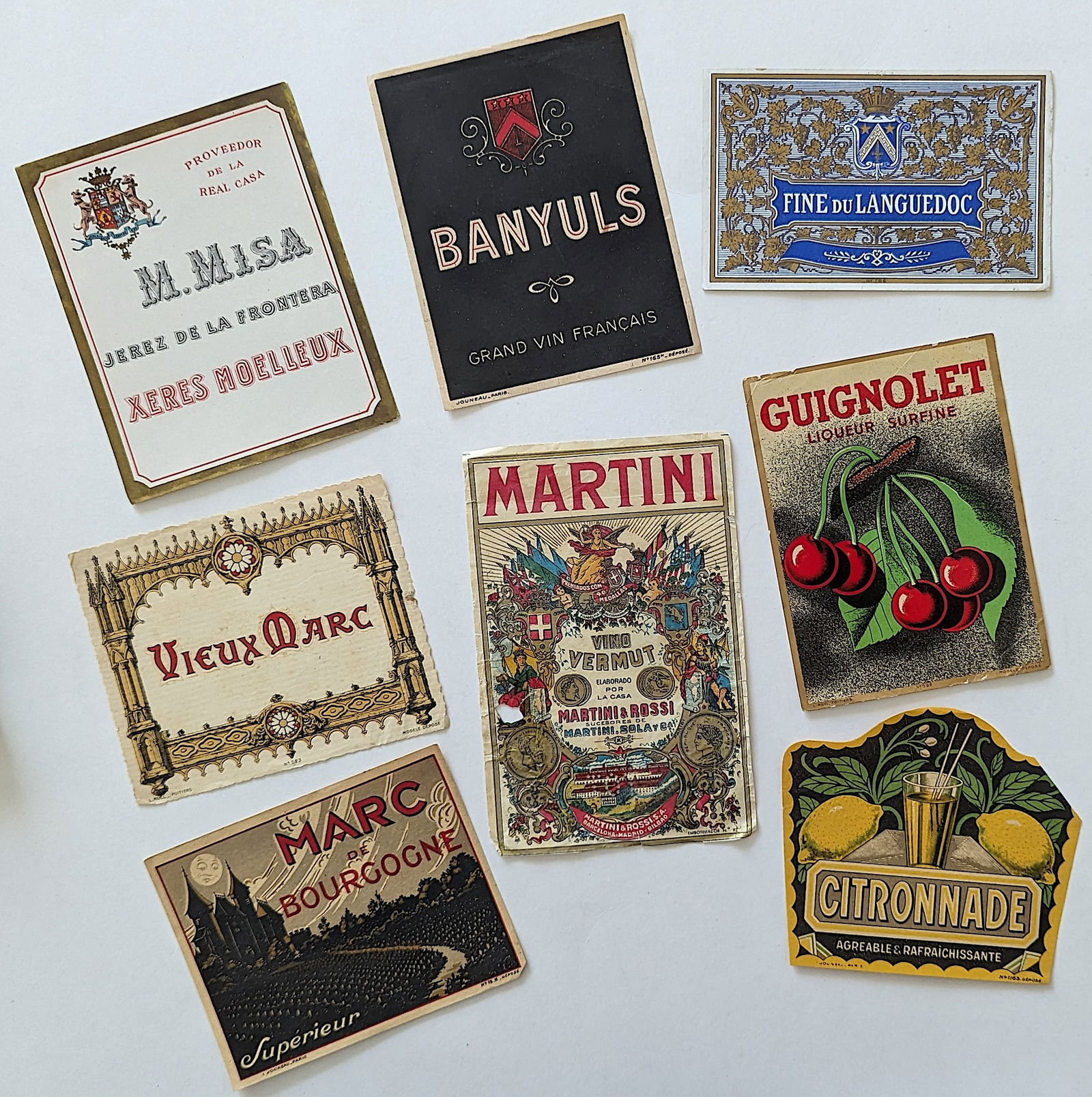 Vintage Rare Set 8 Wine Labels
