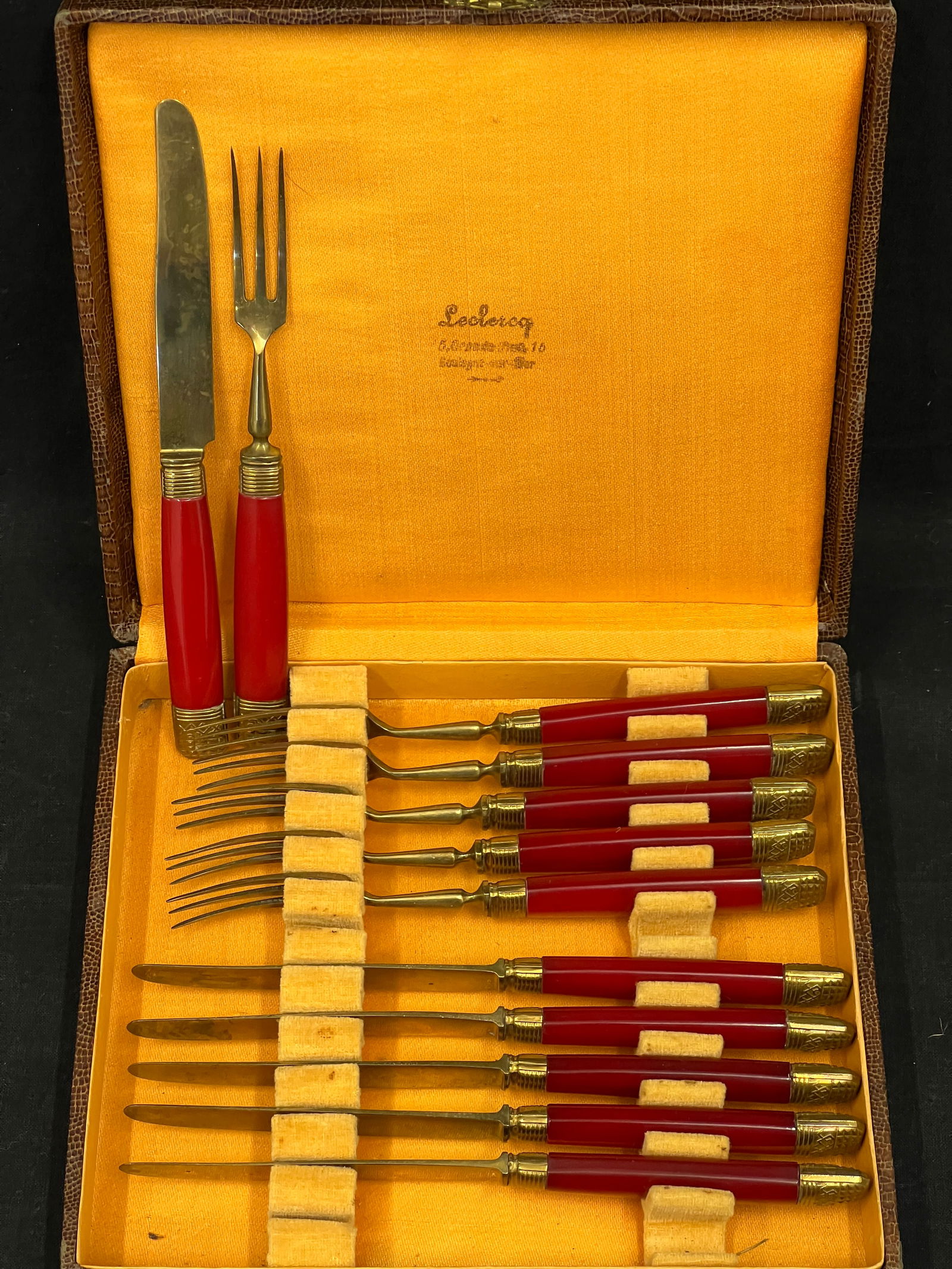 Vintage Red Galalith Dessert Fork / Knife Set