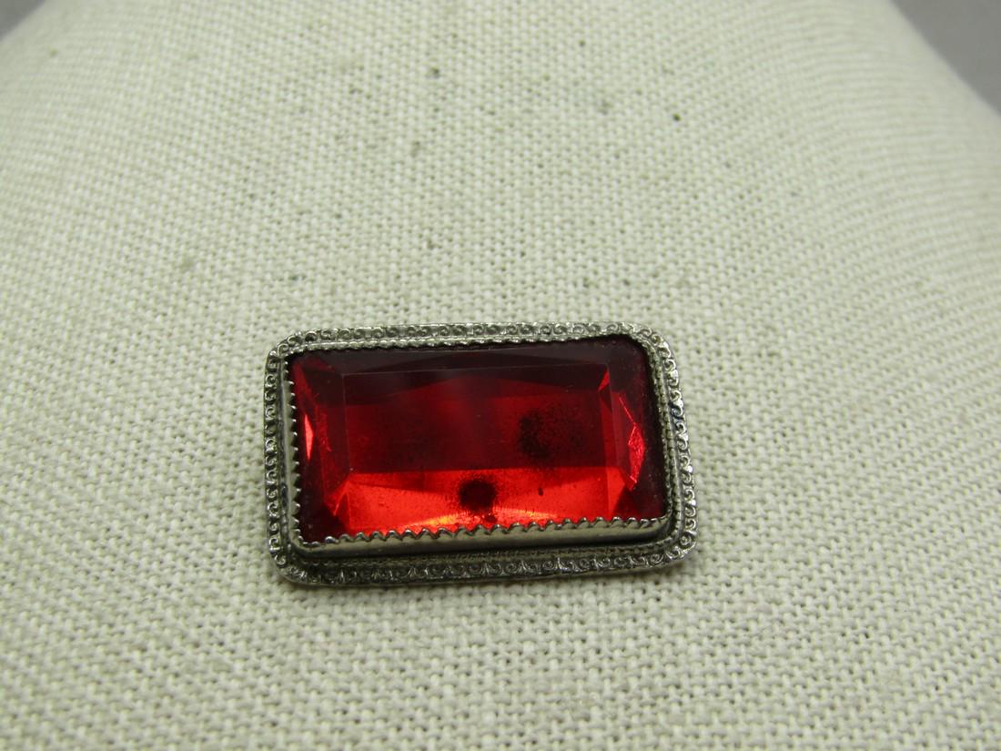 Vintage Red Rhinestone Brooch, Mid-Century, Rectangular, C-Clasp