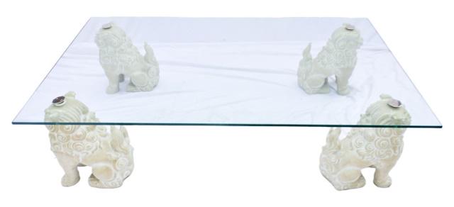 Vintage Regency Plaster Figural Lions Coffee Table