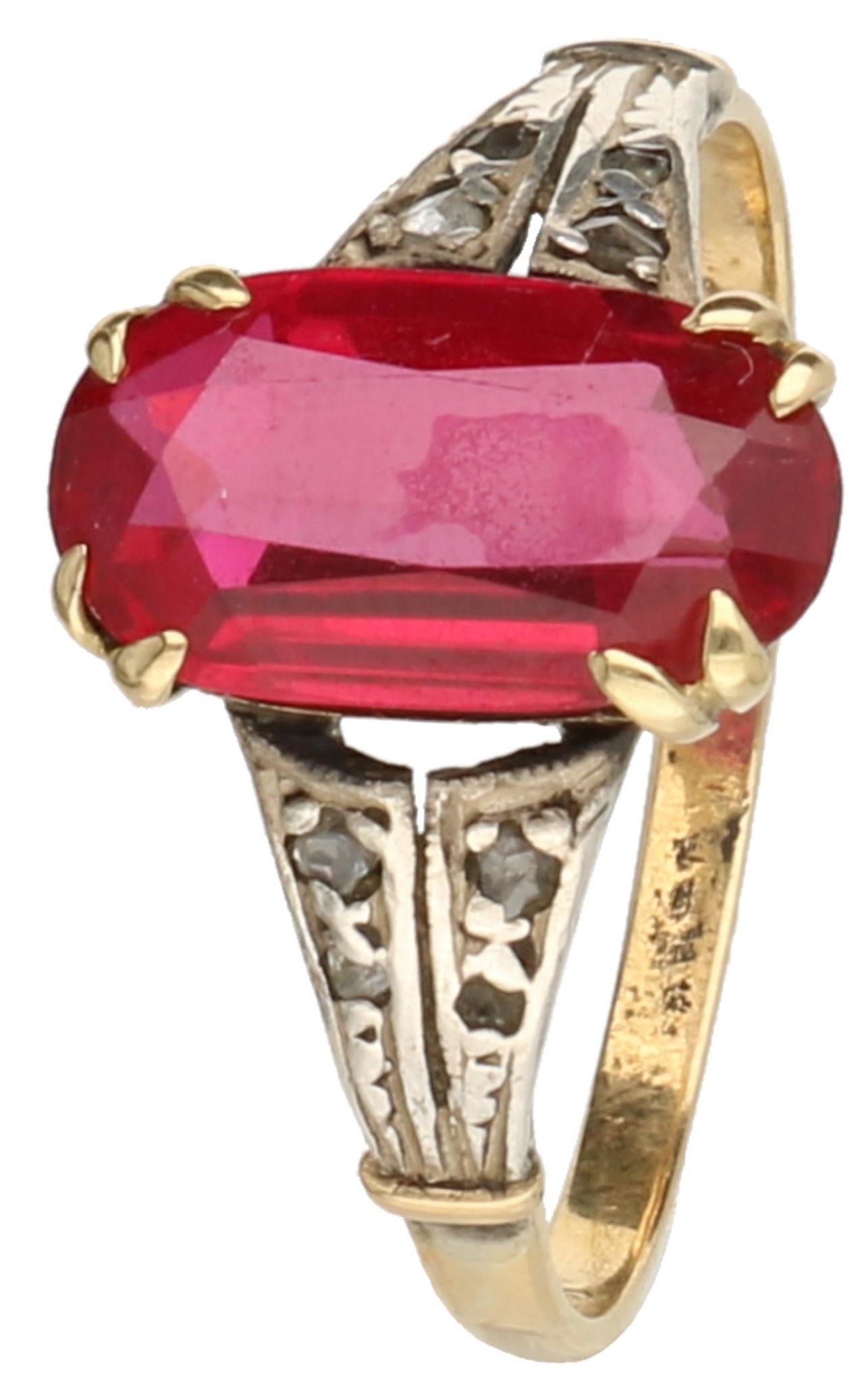 Vintage ring bicolor gold, diamond and ruby - 14 ct.