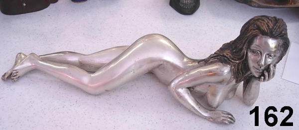 VINTAGE RISQUE BRONZE NUDE LADY SILVER OVERLAY