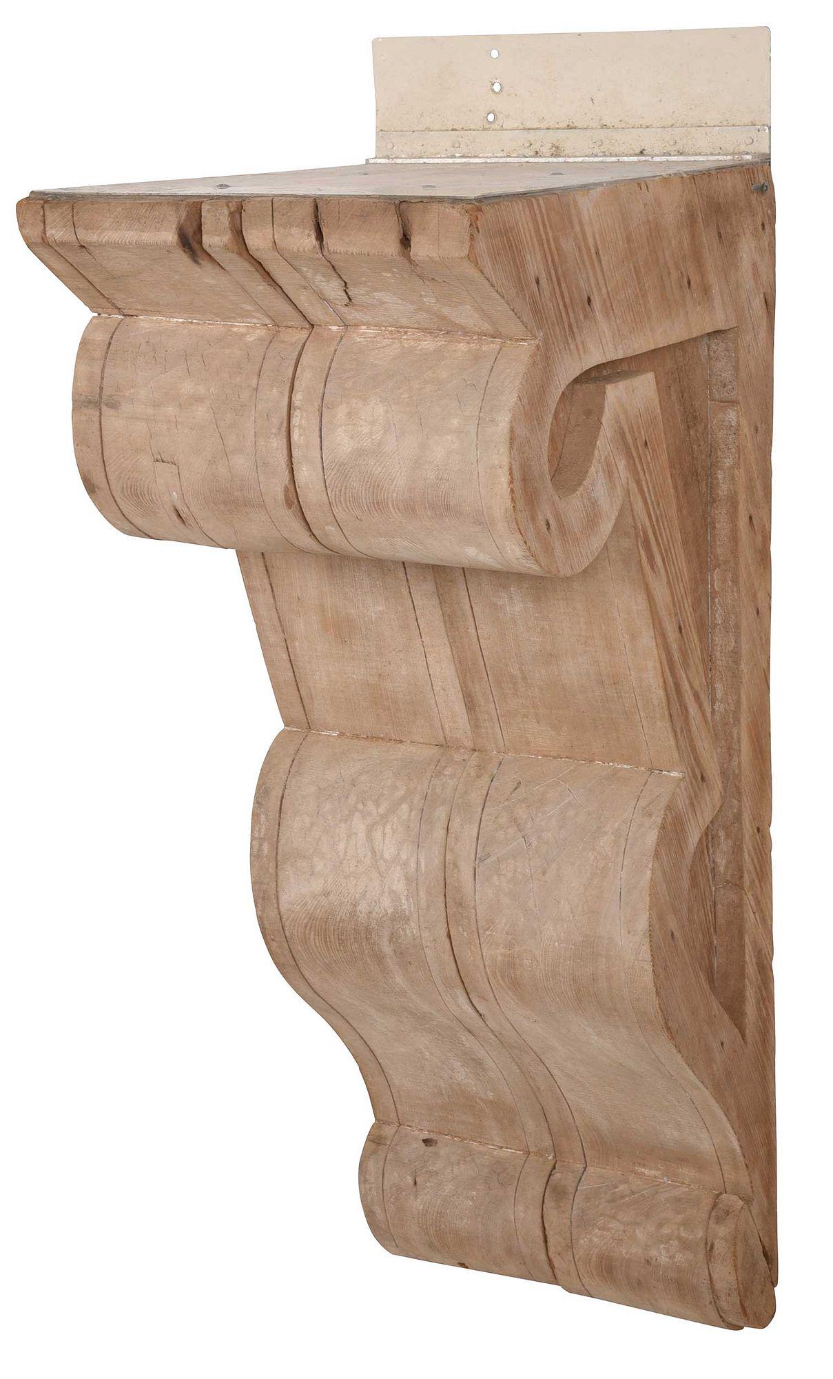 Vintage Scrolled Pickled Pine Architectural Corbel