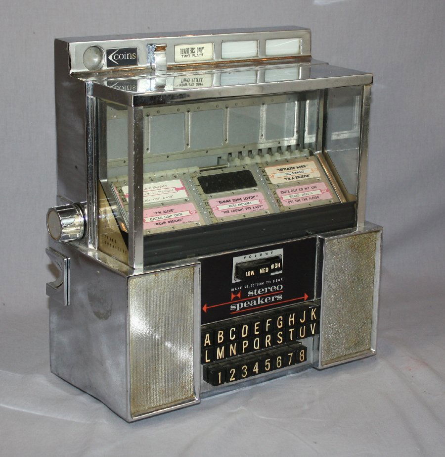 C.J. Sheils Personal Stereophonic Music Wallbox WurlitzerMar 21, 2026Darche MFG Co, Flash Light Alarm Bank ClockFeb 26, 20261954 Seeburg HFR 100 Selectomatic JukeboxMar 21, 2026Seeburg AY160 Coin Op JukeboxFeb 26, 2026Little Duke 5-cent slot machineMar 28, 2026Wurlitzer Model 2710 Stereo Jukebox, c. 1963Mar 08, 2026Ballys Vintage Slot MachineFeb 26, 2026A Wurlitzer 'Carousel' cassette jukebox4 days Left1946 ROCK-OLA JUKEBOX MODEL 1422 W/ RECORDS4 days LeftJennings The Governor 5 Cent Slot MachineMar 03, 2026A 1950s vintage jukebox by AMI model I6 days Leftc1925 Mills Novelty Liberty Nickel Slot Machine5 days LeftCrosley Retro Style CD Jukebox, 20th c., H.- 51 3/4 in., W.- 25 1/2 in., D.- 13 1/2 in.Feb 27, 2026Art Deco Coin Operated Cigarette VendorFeb 26, 202625 Cent Mills 777 Restored Slot MachineMar 21, 2026Vintage Mechanical Pachinko Ball Game1 day Left