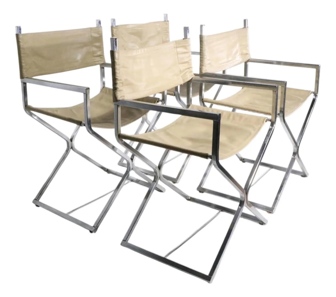 Vintage Set of Four Chrome and Vinyl Directors Chairs 1970s
