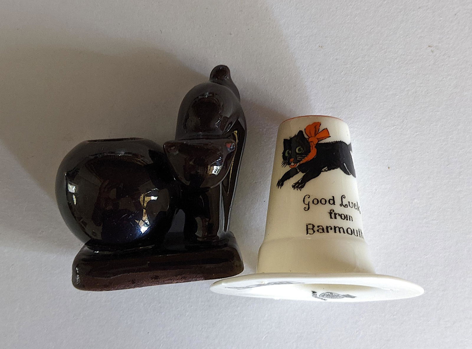 Vintage Set with 2 Black Cat Ceramic Elements