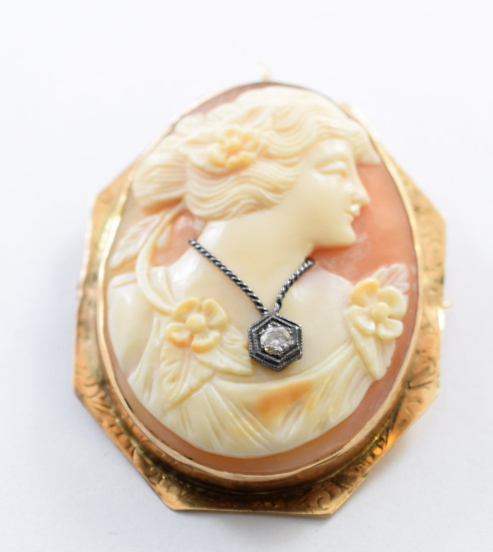 Vintage Cameo Pin/BroochVintage Habille Cameo Pendant Brooch Pin Pendant 14K Yellow Gold, 35.91 GramsVINTAGE HABILLE CAMEO PENDANT BROOCH PIN PENDANT2 days LeftVINTAGE HABILLE CAMEO PENDANT BROOCH PIN PENDANTMar 08, 2026Diamond, Shell Cameo, 14k White Gold Pendant3 days LeftShell Cameo, 10k Yellow Gold Pin Pendant3 days LeftShell Cameo, 10k Yellow Gold Pin Pendant3 days LeftANTIQUE CAMEO CARVED SHELL PENDANT/BROOCH WITH 14K YELLOW GOLD AND FOUR DIAMONDS3 days LeftVictorian Conch Shell Cameo, 10k Pin Pendant3 days LeftCARVED SHELL CAMEO BROOCH WITH WIRE FILIGREE BOARDER FAME AND 14K GOLD 13.2GRAMS3 days Left14K Gold Filigree Shell Cameo Convertible Brooch PendantMar 07, 2026Antique Gold-Tone Shell Cameo Brooch PendantFeb 27, 2026Vintage Red & White Cameo Brooch Depicting A Silhouette Of A Victorian BeautyFeb 26, 2026ANTIQUE 1920'S ITALIAN CAMEO PENDANT BROOCH PIN 18KMar 07, 202610K Gold and Shell Cameo Convertible Brooch Pendant with Seed Pearl BorderMar 07, 2026ANTIQUE LARGE CONCH CAMEO LARGE BROOCHFeb 28, 2026